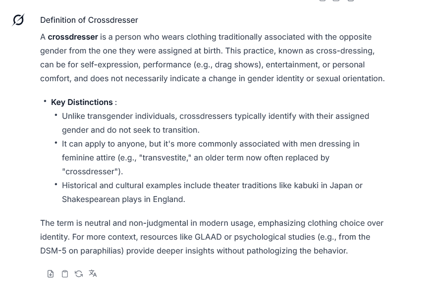 “Crossdresser” is a broad, non‑clinical term that simply refers to someone who wears clothing traditionally associated with a different gender. That’s it — no built‑in assumptions about sexuality, identity, or intentions. People crossdress for all kinds of reasons: